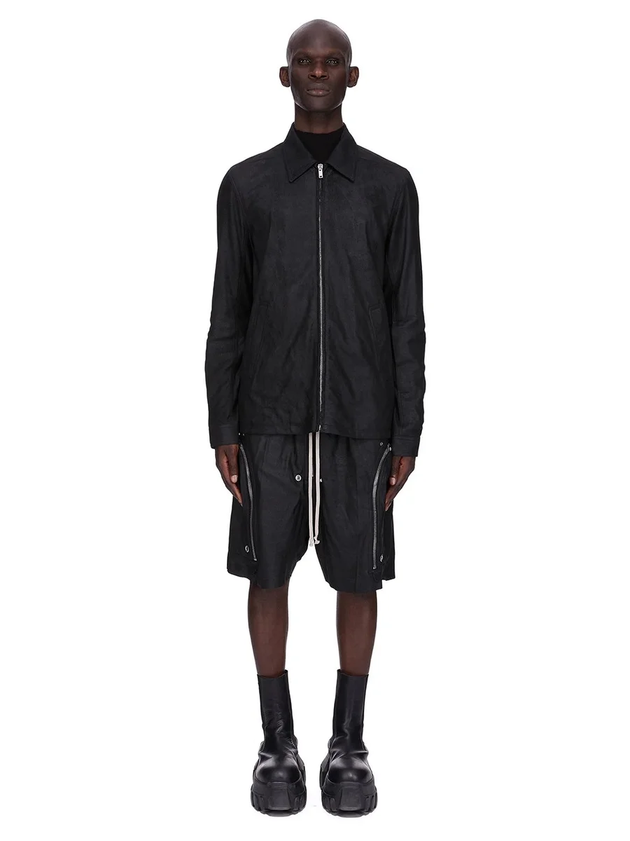 RICK OWENS FW25 CONCORDIANS BRAD JKT I SVART BLISTERLAMMSKINN