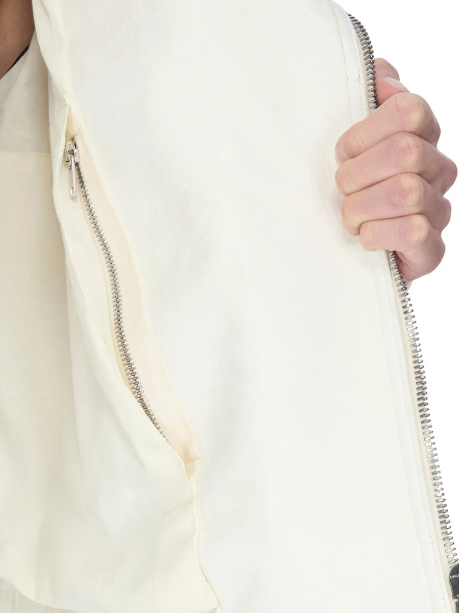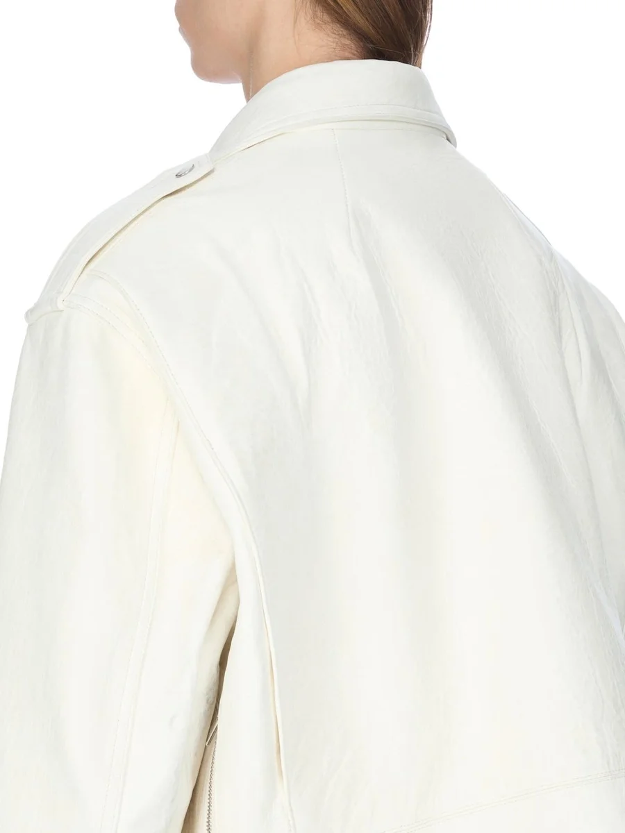 DESSA BORGADE JUMBO BAUHAUS STOOGES ÄR LÅNGA ÖVER HÖFTEN MED LÅNGA ÄRMAR OCH EN OVERSIZED PASSFORM. DEN HAR EN BIKER-DUBBELKNÄPPT FRAMSTÄLLNING MED EXCENTRUM DRAGKNÄPPNING, EN BRED KRAGE OCH SLAG MED SILVERKNÄPP. DEN HAR EN RUNDAD BAUHAUS-FICKA MED DRAGKNÄPP PÅ VÄNSTER SIDA AV KROPPEN OCH EN EXTRA FICKA MED FLAK SOM FÄSTES MED EN DOLD KNÄPP. DEN HAR SIDOFICKOR MED DRAGKEDJA FRAM OCH SIDOFICKOR BAKSIDOR, EN DAGONAL FICKA MED DRAGKEDJA PÅ ÖVRE HÖGER ARM SAMT EN HORISONTELL DRAGKEDJA VID ARMBÅGEN OCH EN FICKA MED DRAGKEDJA I VÄNSTER UNDERARM. DEN HAR DRAGKEDJEÖPPNINGAR VID MURSETTERNA, AXELHÄLL MED KNÄPPDETALJER OCH ETT BÄLTE SOM LÖPER GENOM BÄLTESHÄLLOR I MIDJAN.