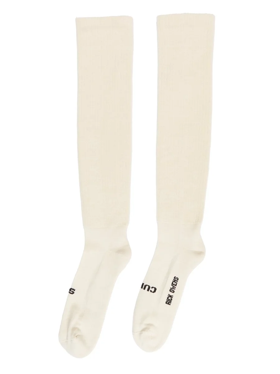 RICK OWENS FW25 CONCORDIANS SO CUNT-STRUMPOJKOR I NATURLIG/SVART BOMULLSSTICKNING