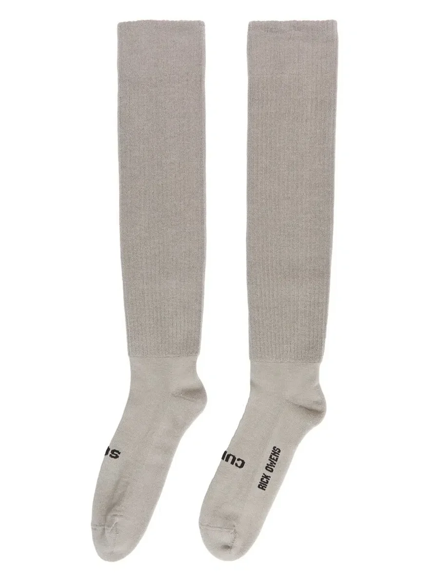 RICK OWENS FW25 CONCORDIANS SO CUNT-STRUMPOJKOR I PÄRLGRÅ/SVART BOMULLSSTICKNING