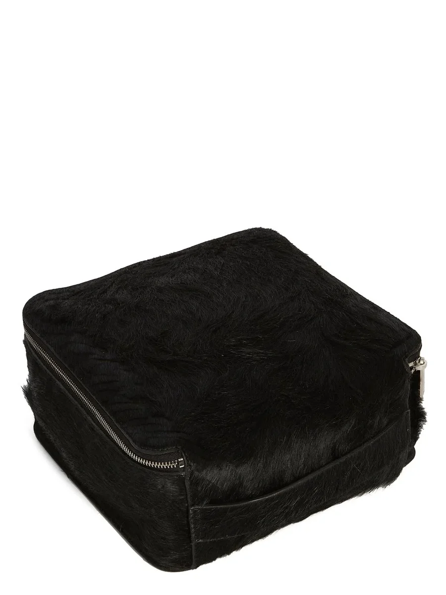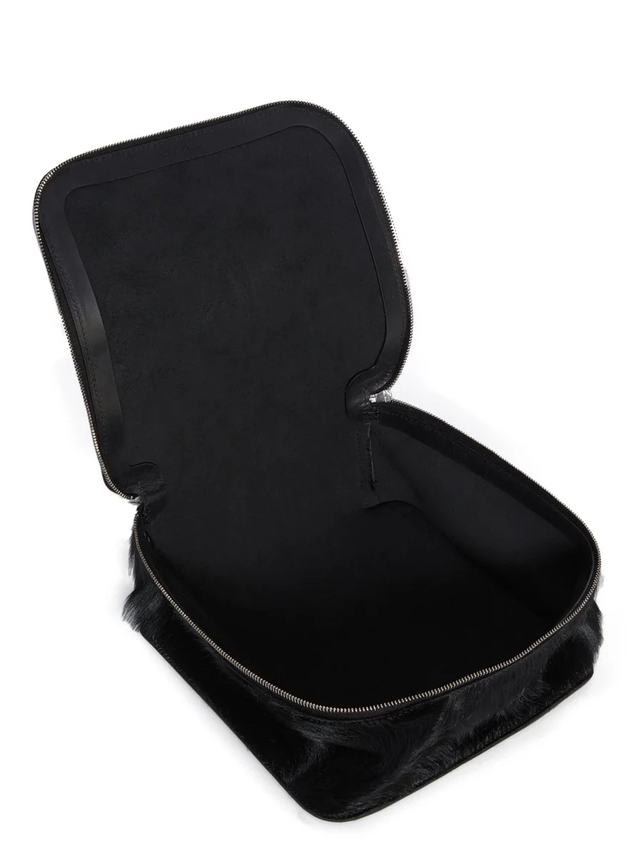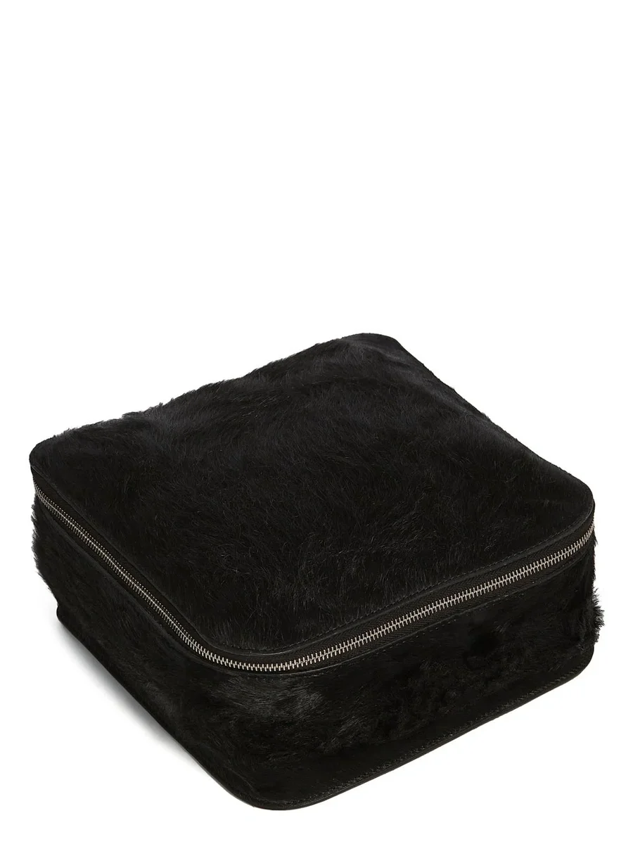 RICK OWENS STOR SKÖNHETSVÄSKA I SVART KOSKINN MED HÅR