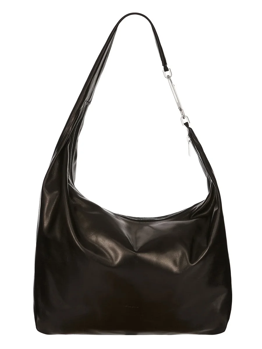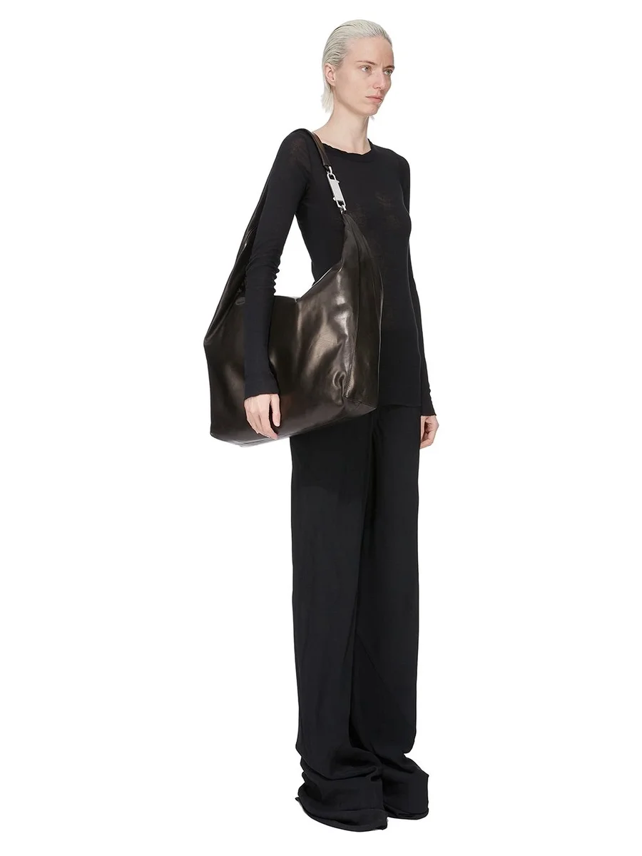 RICK OWENS FW25 CONCORDIANS GEMINI-VÄSKA I SVART, GLANSANDE SMÖRKALVSKINN