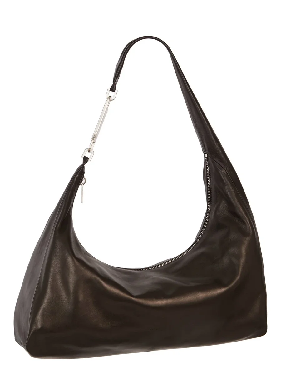 DENNA GEMINI CROPPED-VÄSKA ÄR EN MINDRE VERSION AV VÅR STORA GEMINI-VÄSKA. DET ÄR EN MJUK A-FORMAD VÄSKA SOM SLUTAR SIG I MITTEN. DEN BÖJER SIG NER FÖR ATT SKAPA EN REM SOM FÄSTES MED EN GEMINI DUBBELKARBIKA MED RICK OWENS-LOGOTYPEN GRAVERAD. VÄSKAN ÖPPNAS MED EN DRAGKEDJA ÖVERST, HAR EN INNERFICKA OCH EN PLAT FICKA MED UTMERKANDE U-FORMAD SÖMMNING SYNLIG PÅ BAKSIDA UTSIDA.
