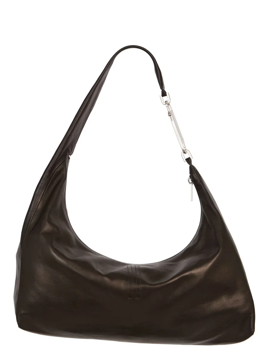 RICK OWENS FW25 CONCORDIANS CROPPED GEMINI-VÄSKA I SVART, GLANSANDE SMÖRKALVSKINN