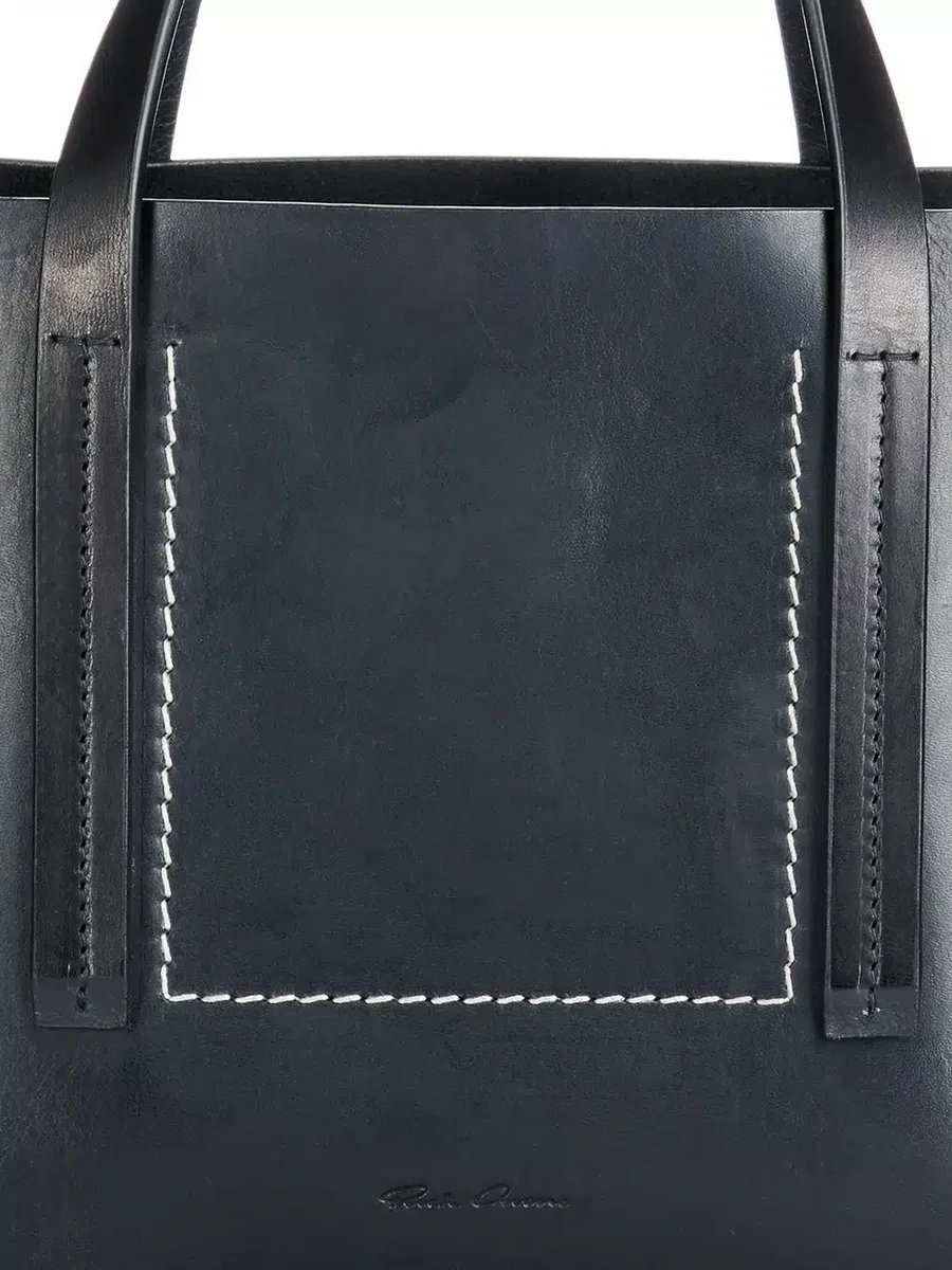 RICK OWENS FW25 CONCORDIANS MINI SHOPPER I SVART GROPPONE-LÄDER